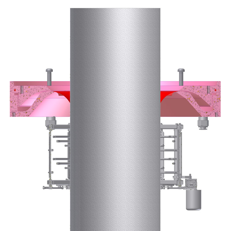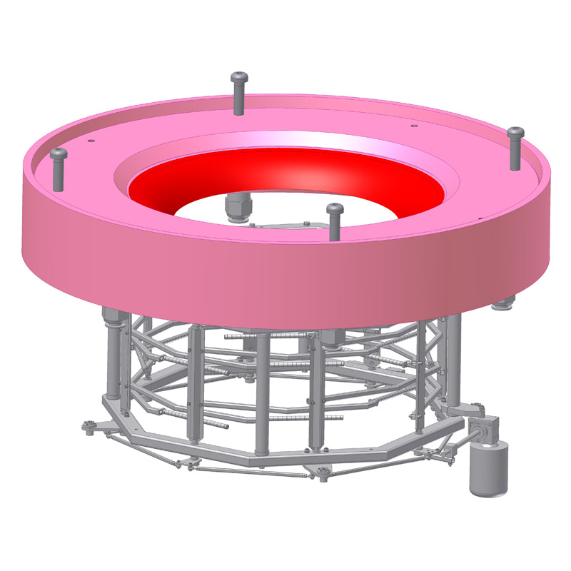 By a push of a button the cage moving arms and its attached low friction contact rollers automatically open and close to accommodate the bubble diameter of choice. A uniform water flow is produced around the bubble by a system of wet wraps and misting nozzles.