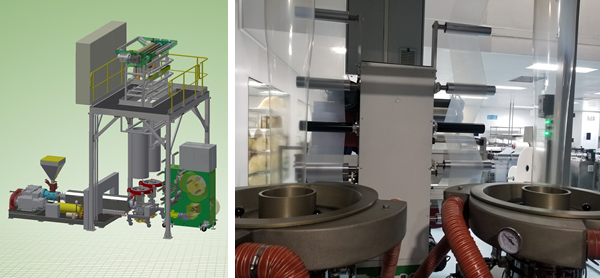 using -up to four Dies- on blown film lines system- different widht.